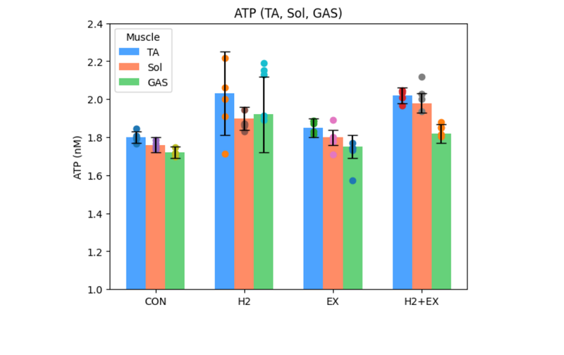 - Sol:水素摂取のみでもATPの底上げが示唆され、運動介入を併用した条件では増加傾向がより見えやすい整理